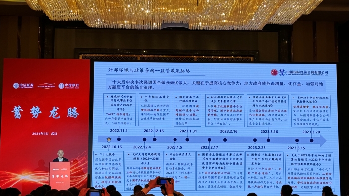 2024年3月22日,由中信证券、中信银行举办的2024年春季资本市场论坛在武汉召开,中国国际经济咨询有限公司业务总监田鹏在“一路同信”债市策略会上就新征程上的城投公司市场化转型与高质量发展”进行了深入分享,引发广泛讨论。
